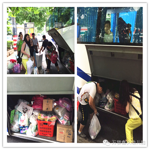 活动当天各位家长和孩子主动积极将爱心物质装上了大巴车。