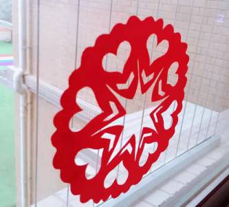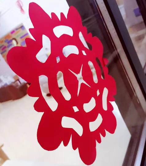 所谓“写个福字迎春节,剪个窗花过大年”,为了红红火火的庆祝新年的到来,万婴各个园所的老师和宝贝们都开始忙活起来啦~将纸折、叠、压、剪~ 瞧!不到30秒,红纸就在老师的剪刀下幻化成一个美丽的窗花。春节期间贴窗花,以此达到装点环境、渲染气氛的目的,并寄托着辞旧迎新、接福纳祥的愿望。■ ■■■■万婴的老师们,一个个可都是心灵手巧,剪出来的窗花那都是专业级的水平呢!看,金鸡报晓!这只打鸣的大公鸡可真是活灵活现呀~镂空剪字,这手艺简直了,你们都是老师傅吗?可别小瞧了咱们万婴的老师,他们可都是能文能武能耍“刀”!一把好手还能剪出立体灯笼,厉害了吧!1不光是咱们万婴的老师,还有小宝贝们也是超厉害的,2自己动手做的剪纸也都是棒棒的呢!过年除了窗花,对联同样不能少~不论是室内还是室外,可得都布置得喜庆热闹,让家长孩子们这段时间在幼儿园,都能感受到过年的欢乐气氛!大红灯笼高高挂,张灯结彩迎新春;老师孩子齐动手,万婴宝宝拜大年!