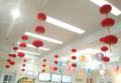 大红灯笼高高挂,张灯结彩迎新春;老师孩子齐动手,万婴宝宝拜大年!