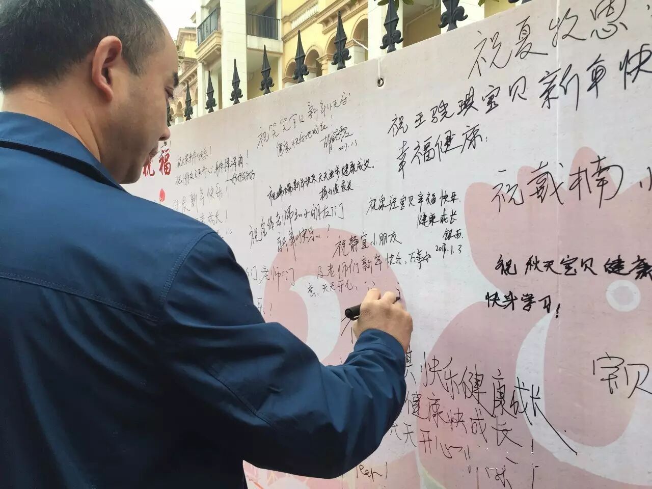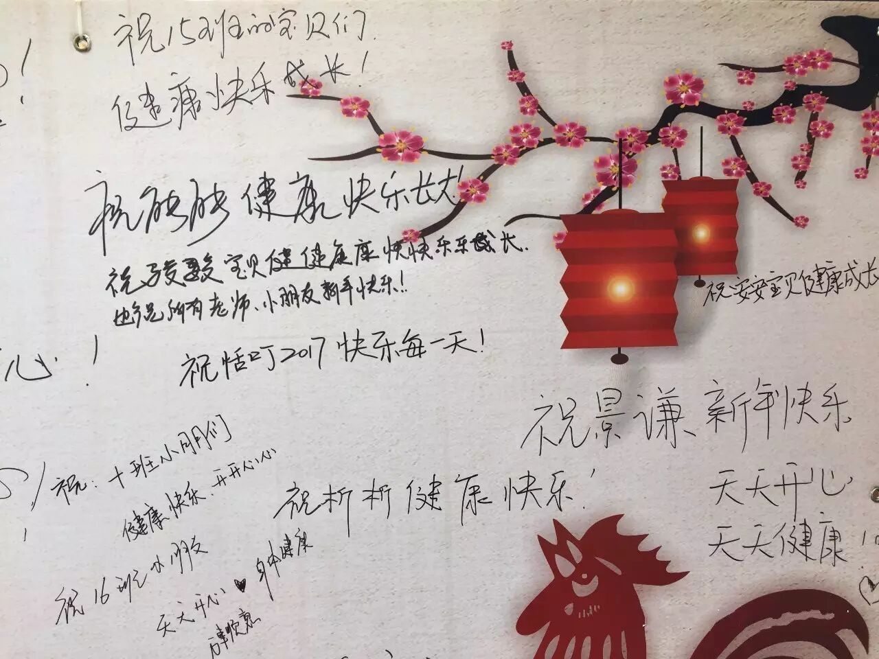 万婴幼儿园还设置了一整面新年祝福墙,墙上写满了来自爸爸妈妈、爷爷奶奶、外公外婆、老师和园长妈妈对宝贝们的祝福。“2017年,我们一定会带着美好的期许与祝福,也带着满满的爱,更加茁壮、快乐地成长!”
