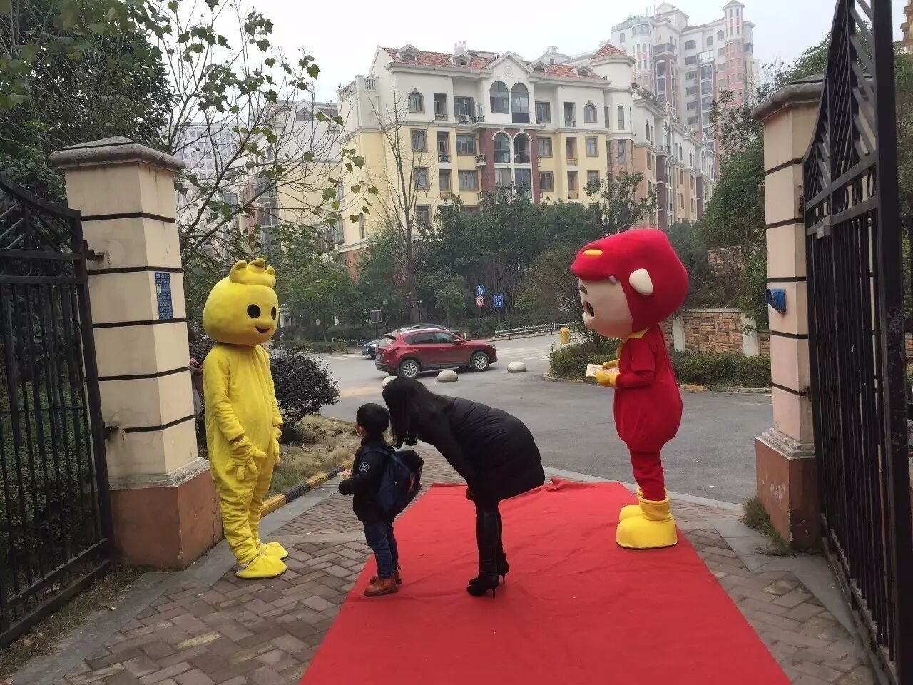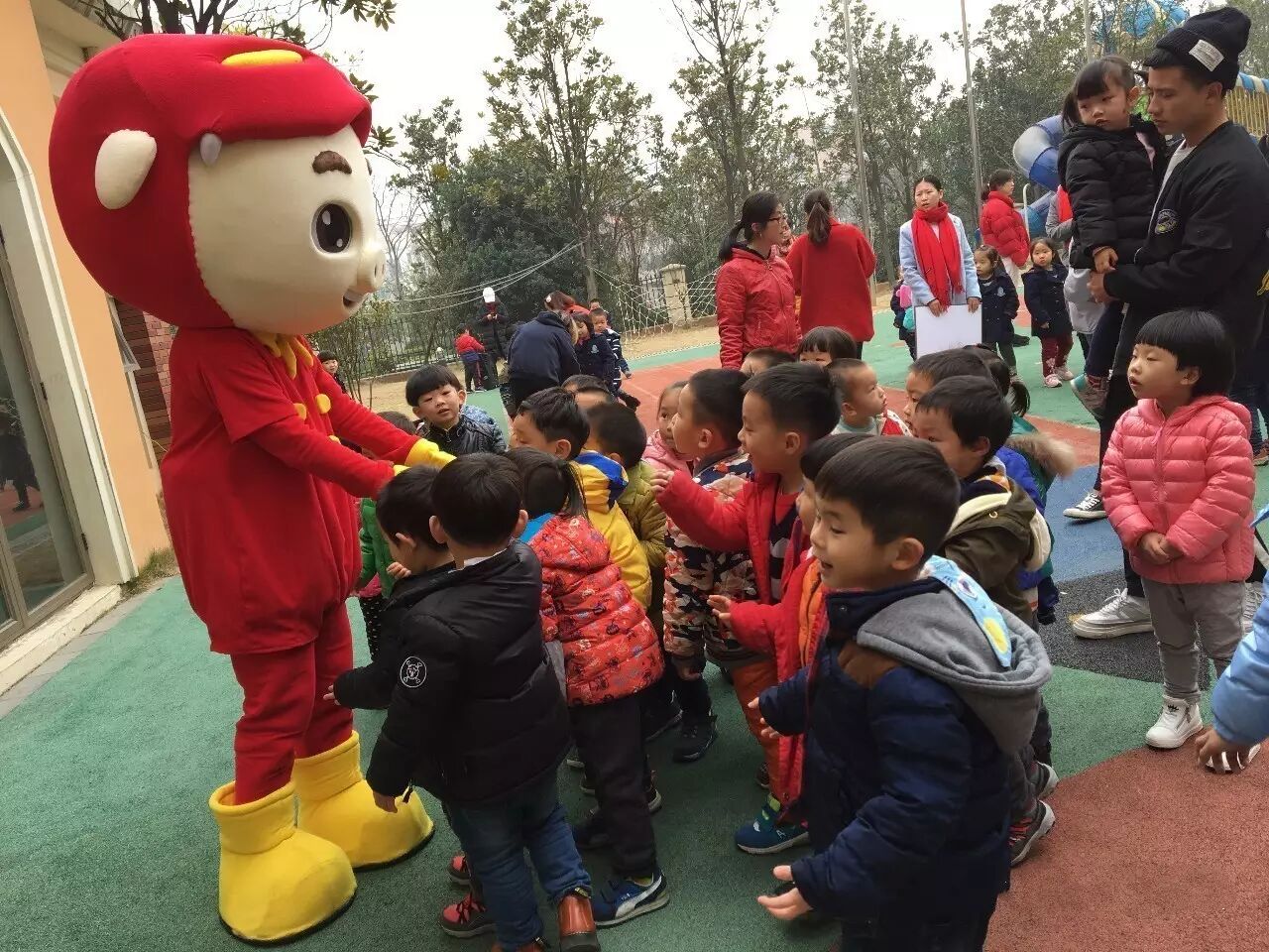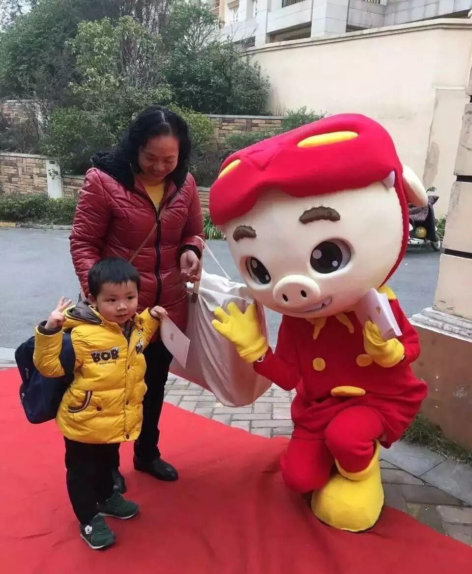 快看,万婴新年新伙伴“猪猪侠”迎接幼儿园的宝贝们进园啦~小朋友们乐坏了~~