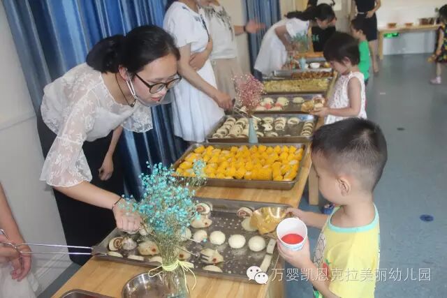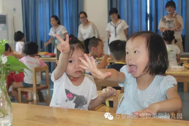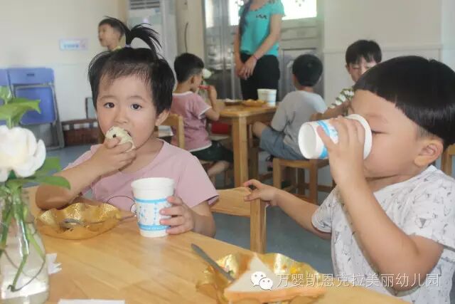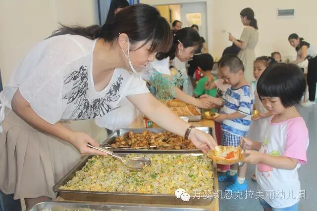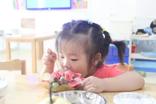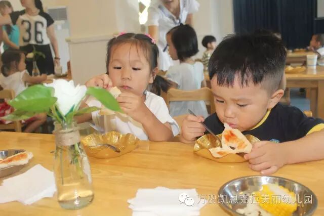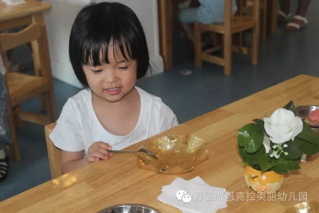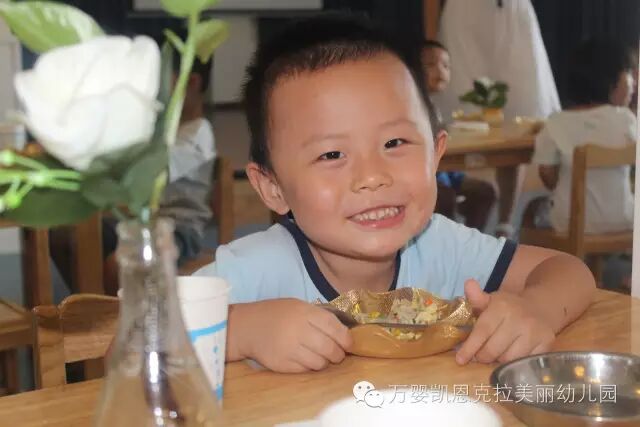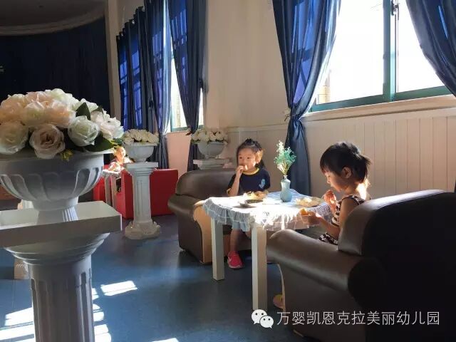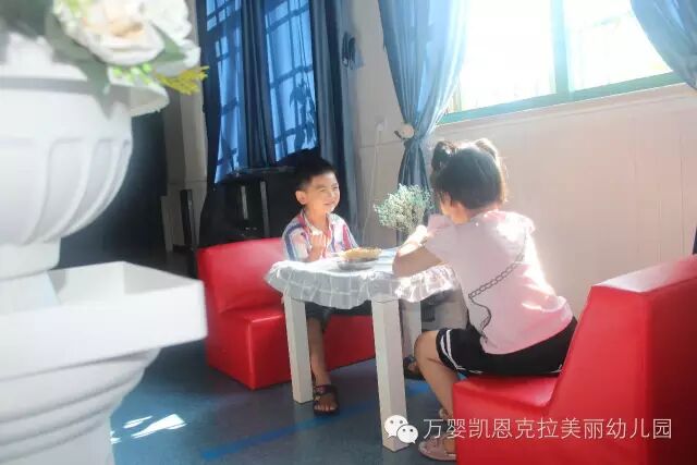 在自由宽松的环境中,各班的孩子们随意交际,自觉维护用餐秩序,做到耐心等候、排队选用食物。遵守多次少取的进餐原则,既很好的顺应了孩子们喜爱走动自取的特点,又避免浪费食物。靠窗的软座、雅致的插花、浪漫的音乐,我们的孩子在这样高品质的体验着生活的美,克拉园的老师们在日常工作的细节中创造条件让孩子做自己的王,向着培养“善良、智慧、高贵、国际化”的世界公民而努力!