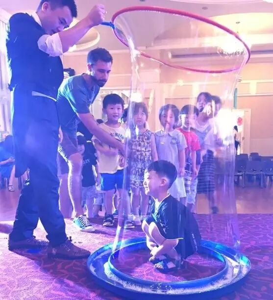 原来是昨天孩子们看了泡泡秀后,忍不住自己要动手~