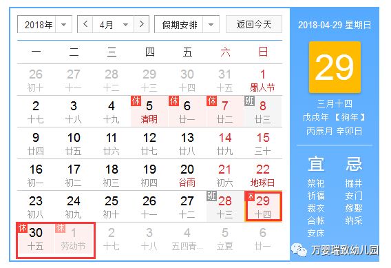 您好!五一劳动节即将来临,根据国务院2018五一劳动节放假通知,我园做出以下安排: