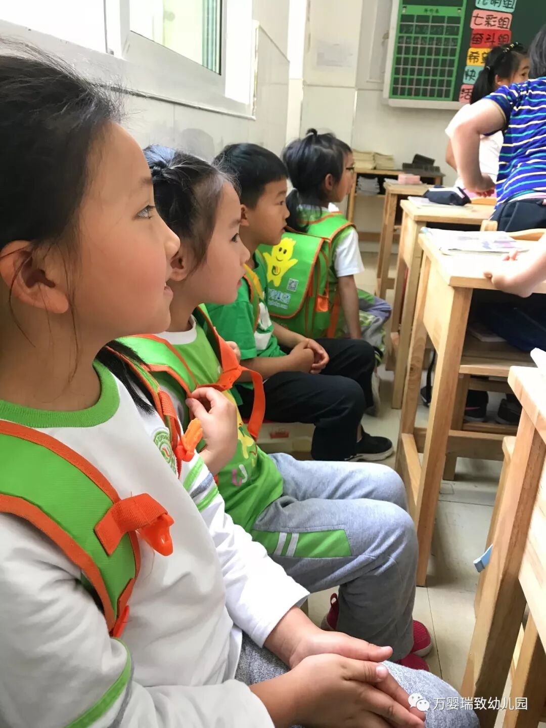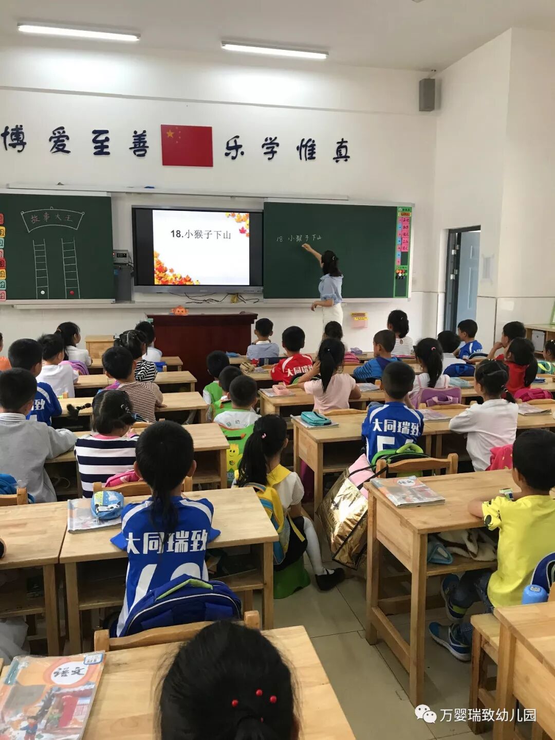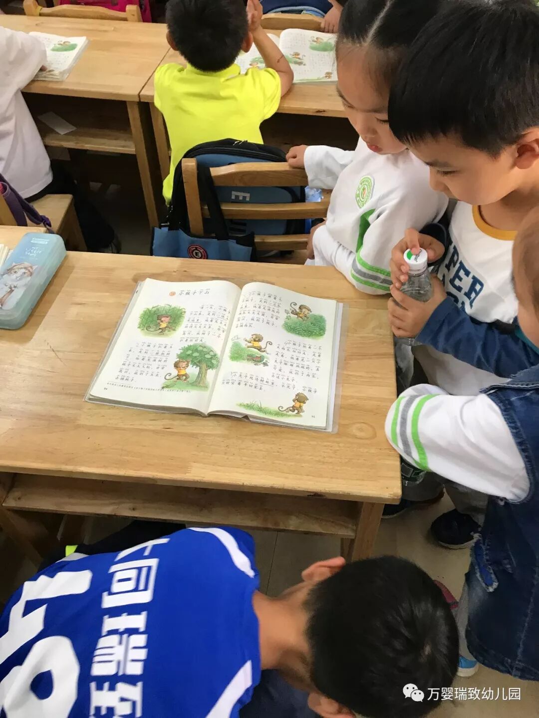 雄伟的钟楼,楼道的干净整洁;墙面上的丰富内容;整齐的书桌;安静的课堂;笔直的坐姿;琅琅的读书声......幼儿园的小朋友们看得认真又激动,立刻感受到了浓浓的学习氛围。