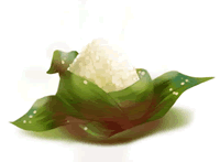 传说屈原死后,楚国百姓哀痛异常,纷纷涌到汨罗江边去凭吊屈原。渔夫们划起船只,在江上来回打捞他的真身。有位渔夫拿出为屈原准备的饭团、鸡蛋等食物,“扑通、扑通”地丢进江里,说是让鱼龙虾蟹吃饱了,就不会去咬屈大夫的身体了。人们见后纷纷仿效。一位老医师则拿来一坛雄黄酒倒进江里,说是要药晕蛟龙水兽,以免伤害屈大夫。后来为怕饭团为蛟龙所食,人们想出用楝树叶包饭,外缠彩丝,发展成棕子。