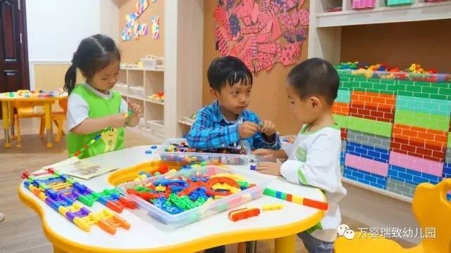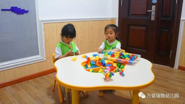 萌萌哒一组照片,建构区,孩子们相互告诉好朋友怎么玩手上的玩具。。。