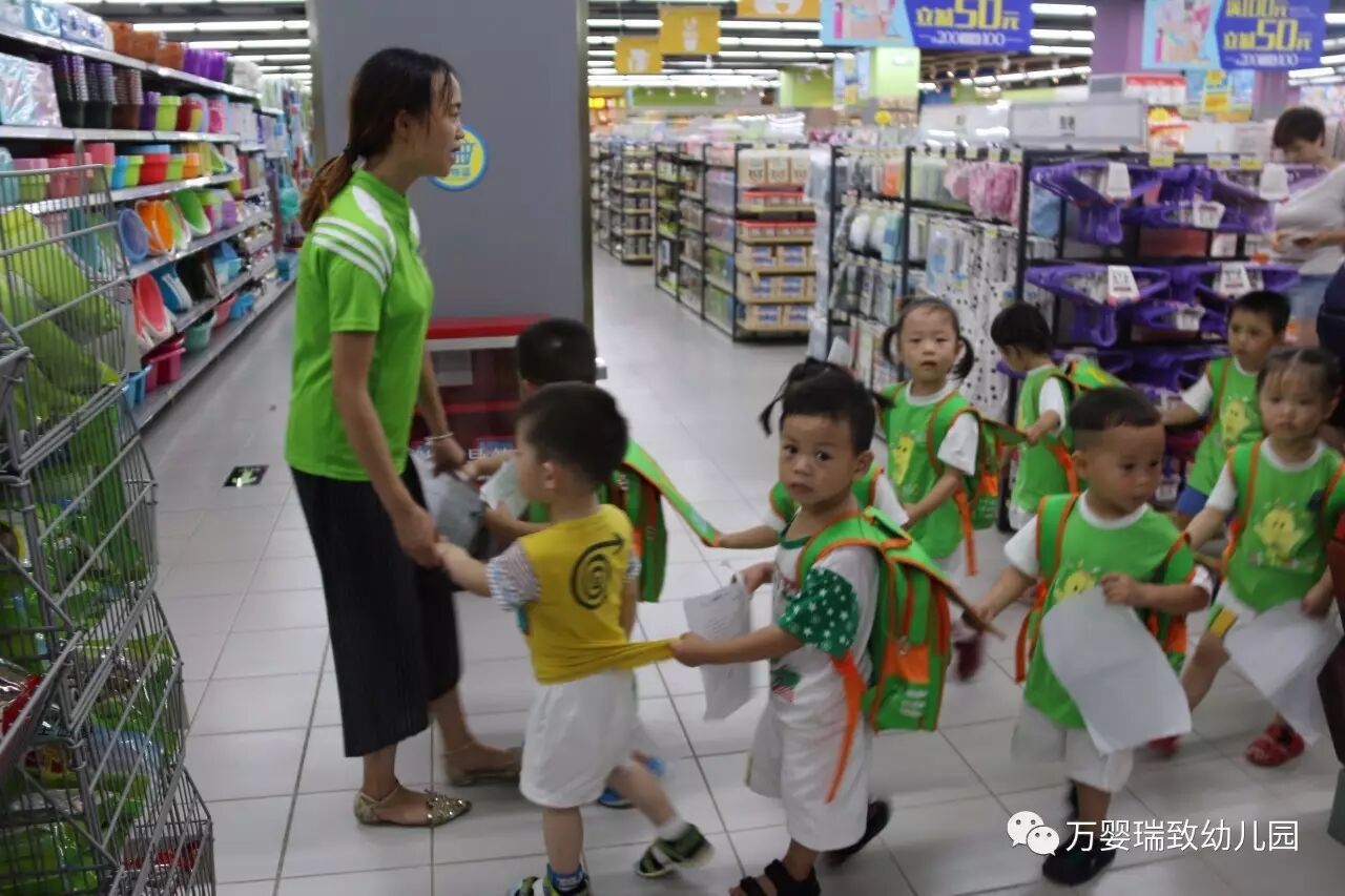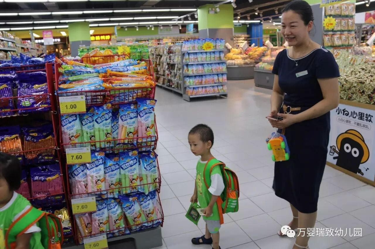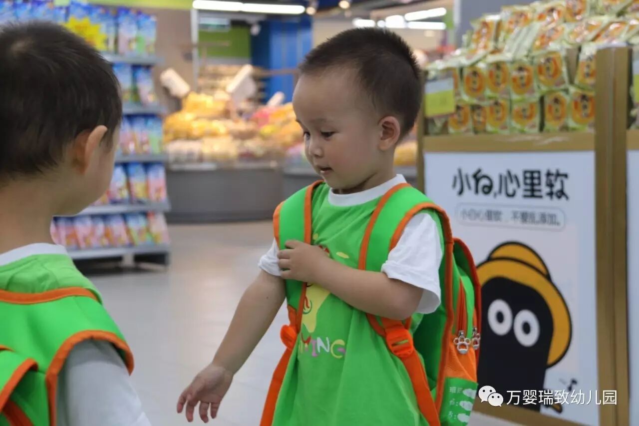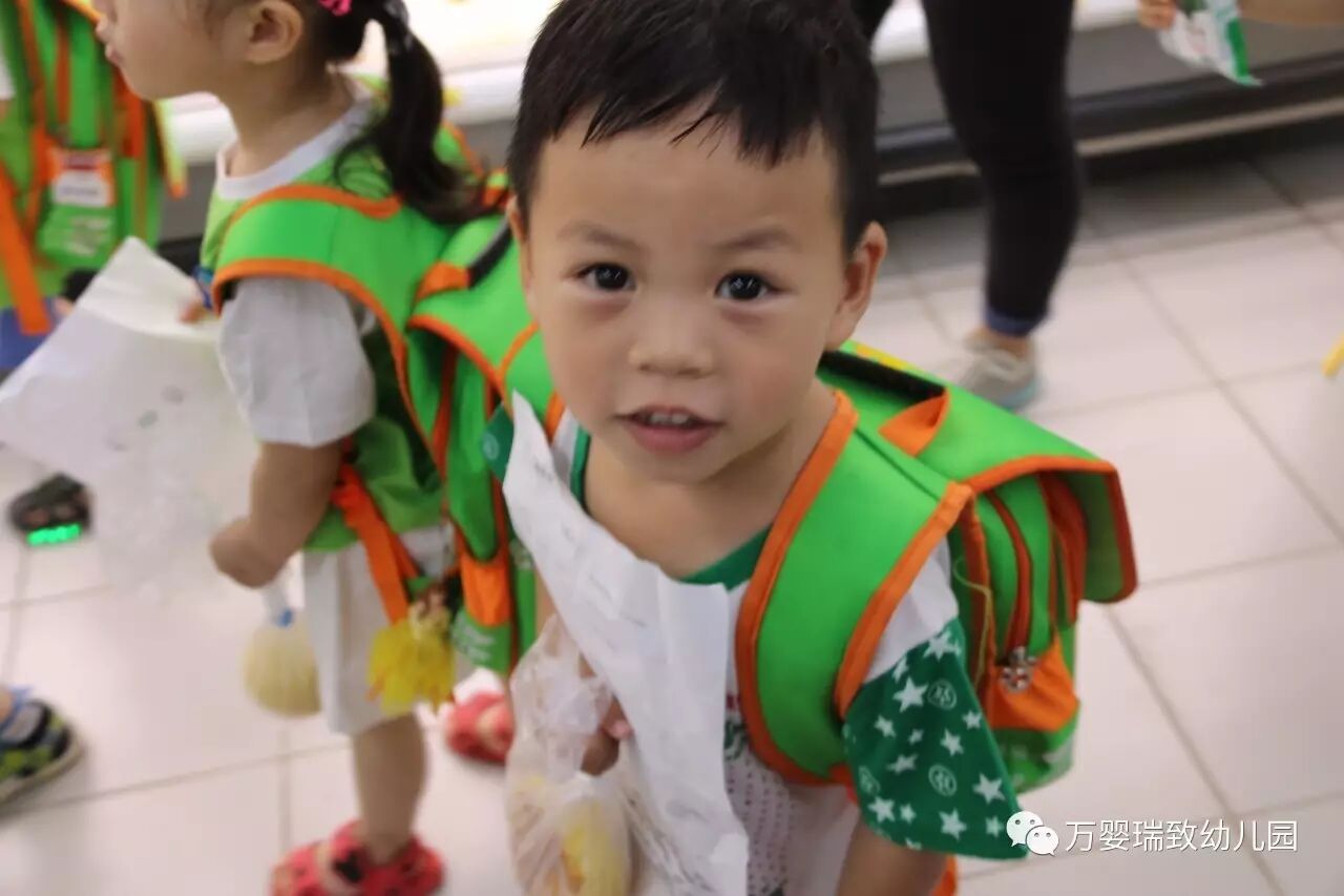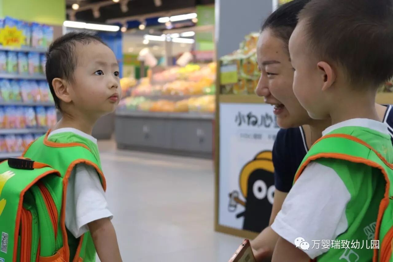 就在今天,我们万婴瑞致幼儿园的小朋友们,背上书包,带好帽子,向着购物超市出发了!