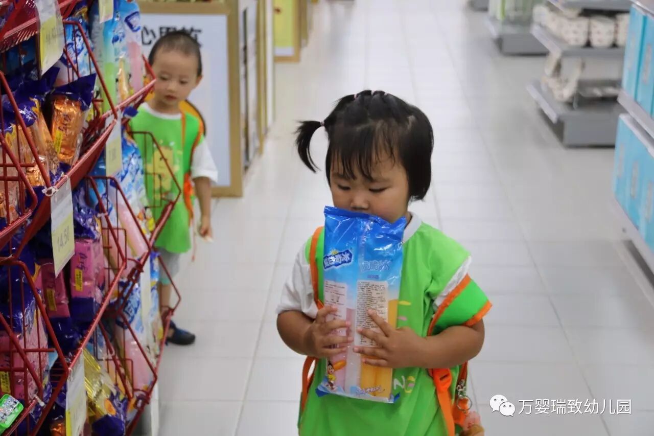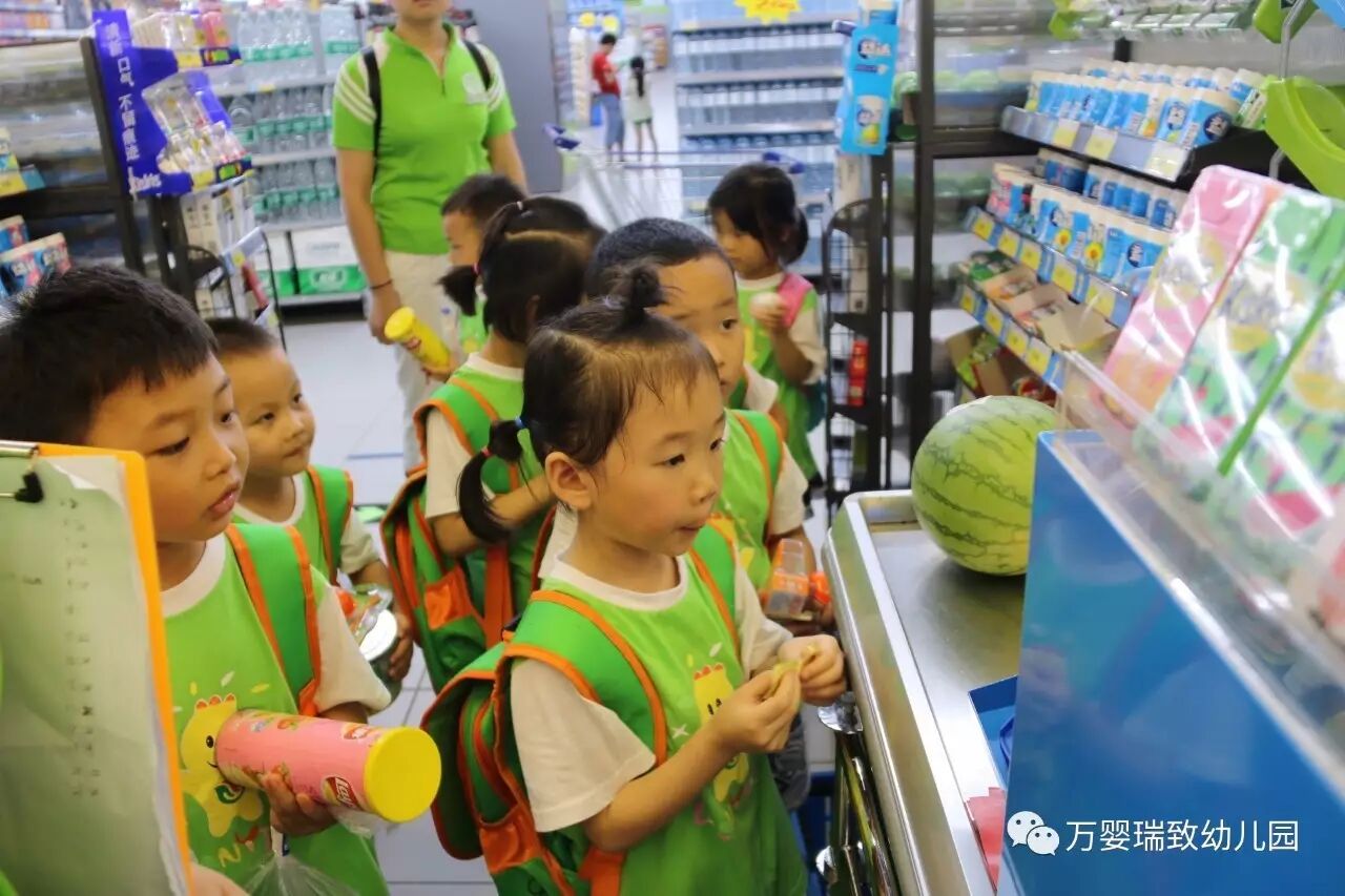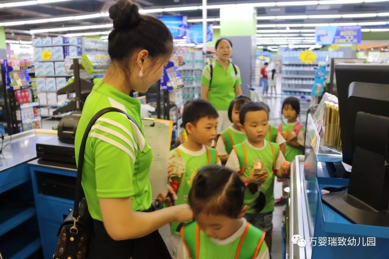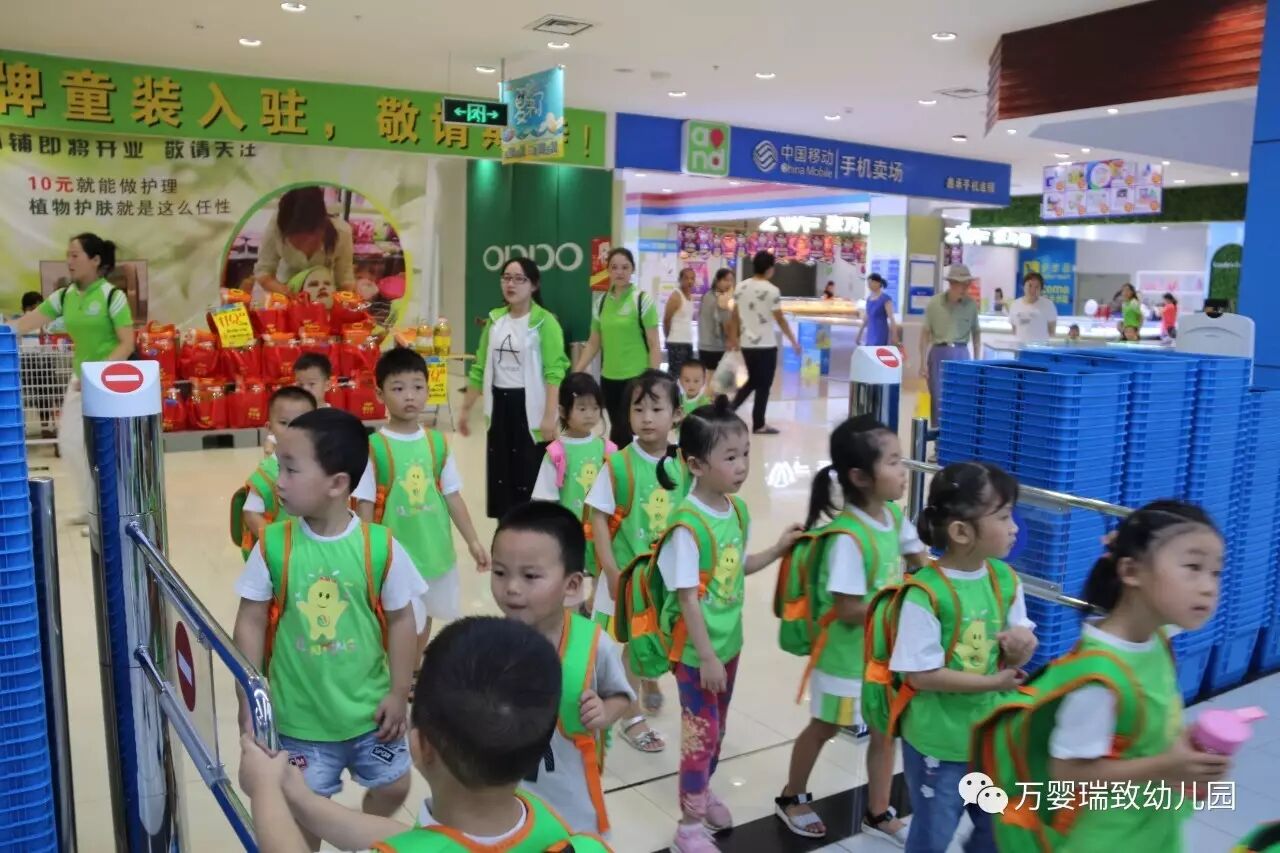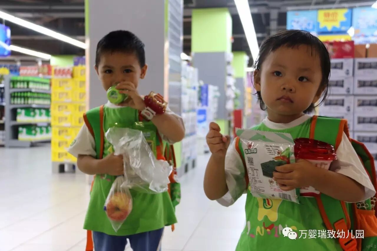 就在今天,我们万婴瑞致幼儿园的小朋友们,背上书包,带好帽子,向着购物超市出发了!
