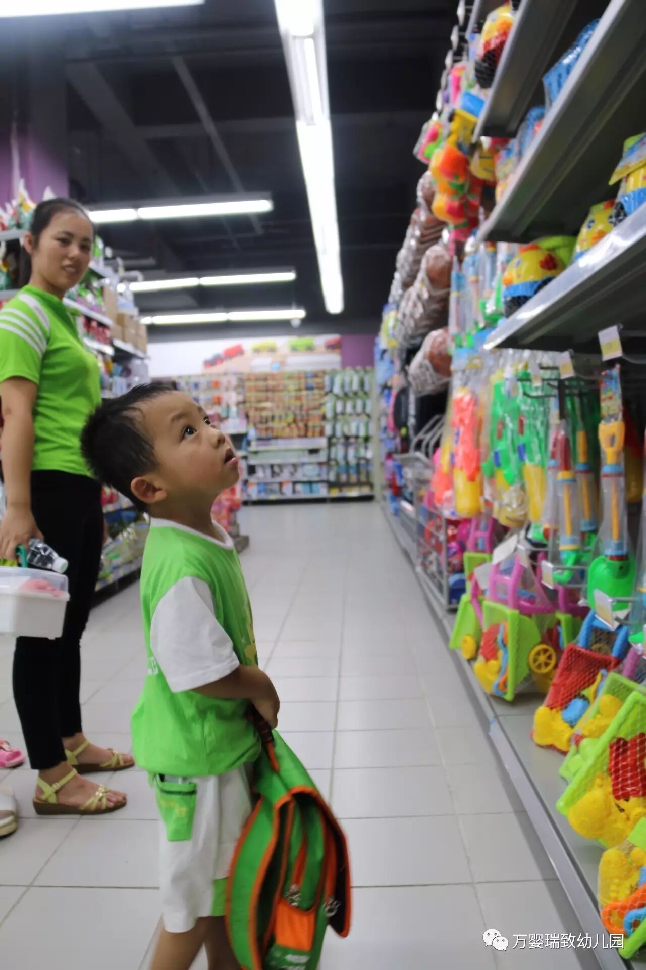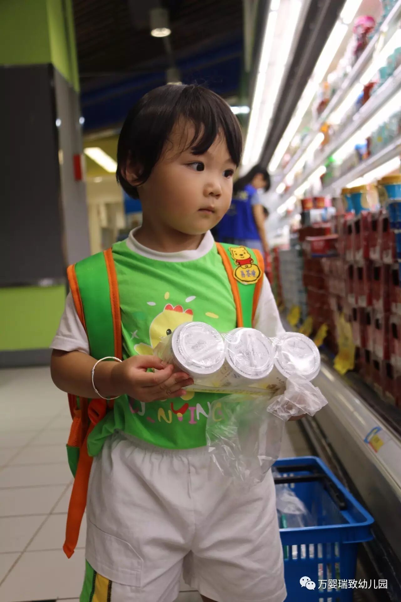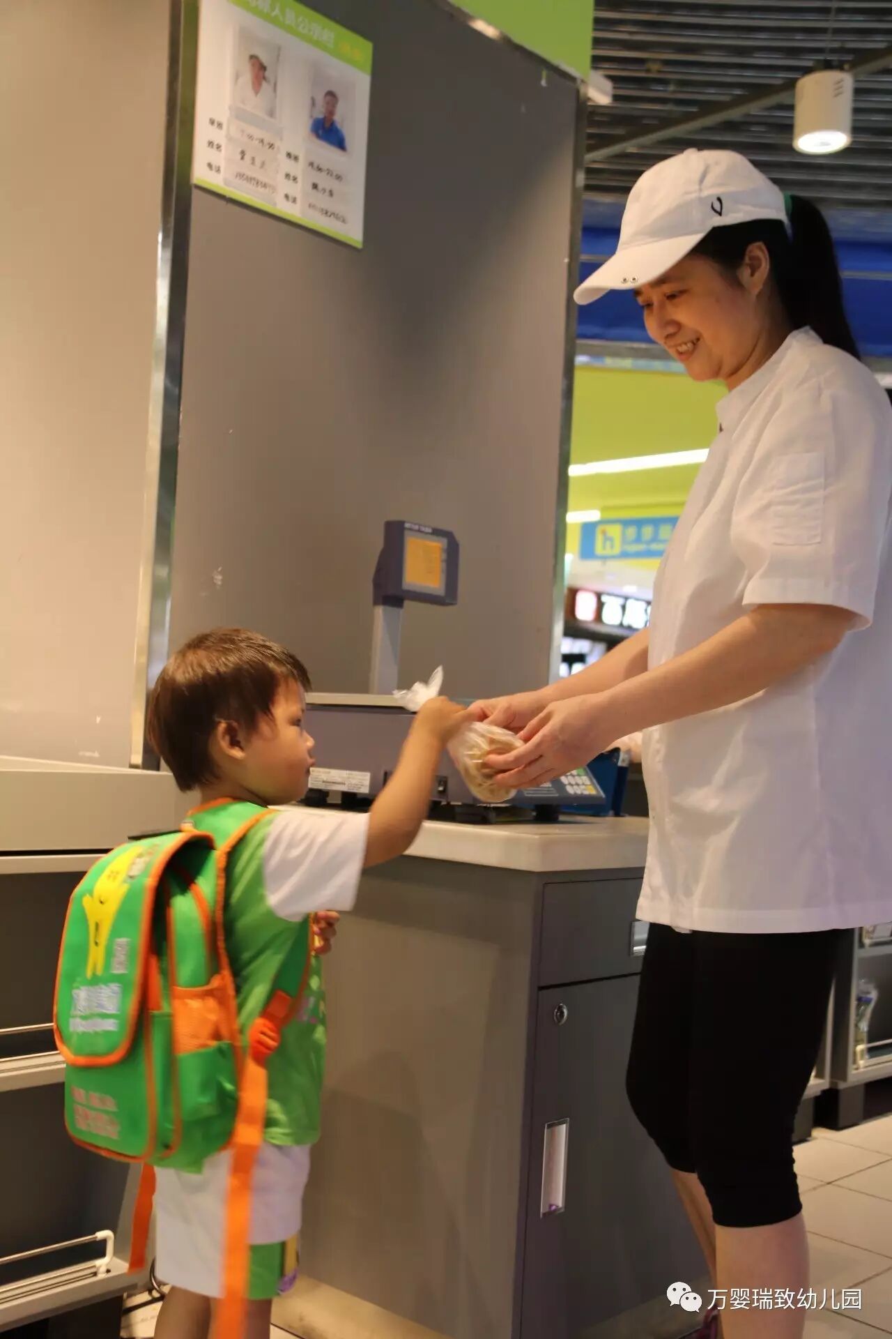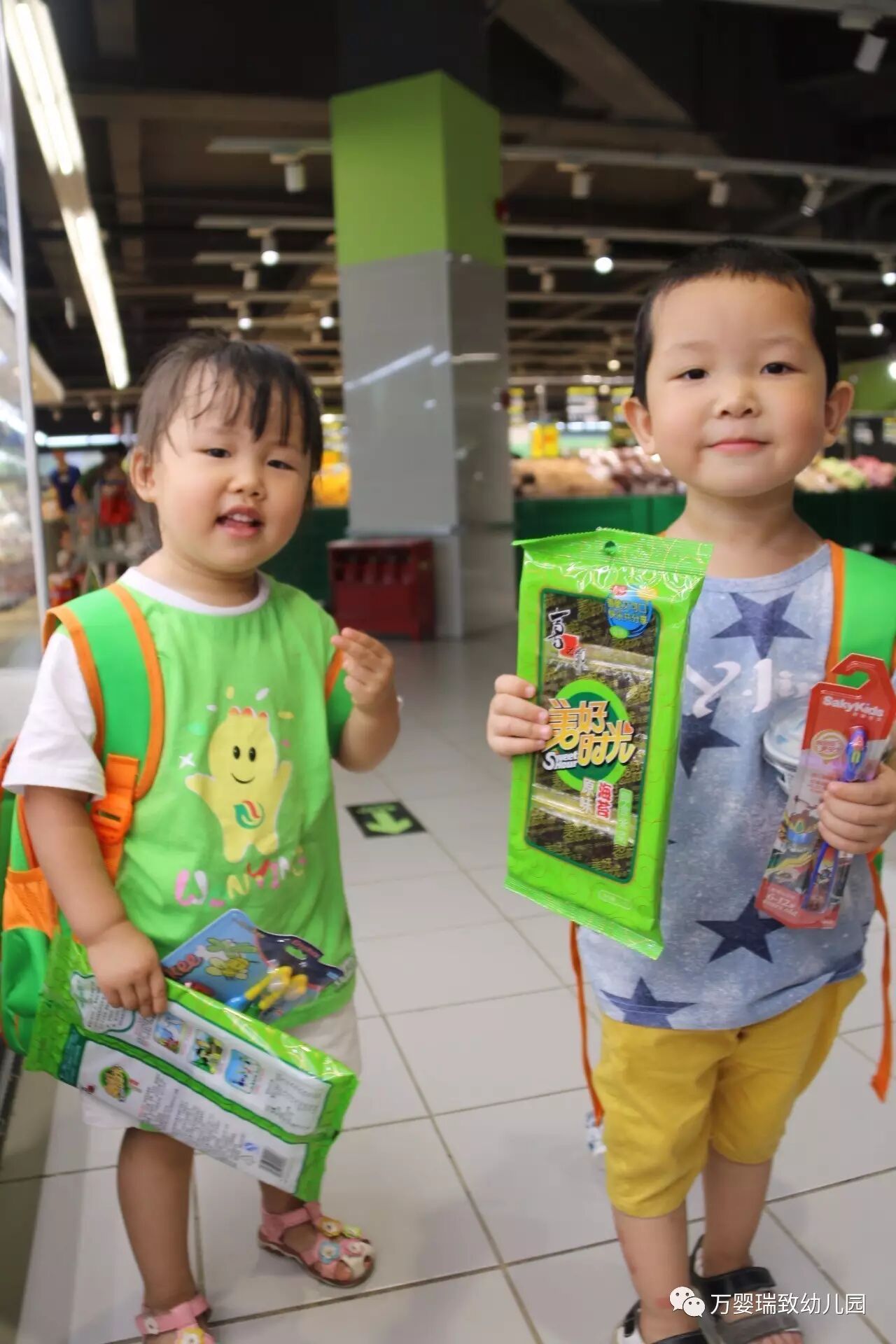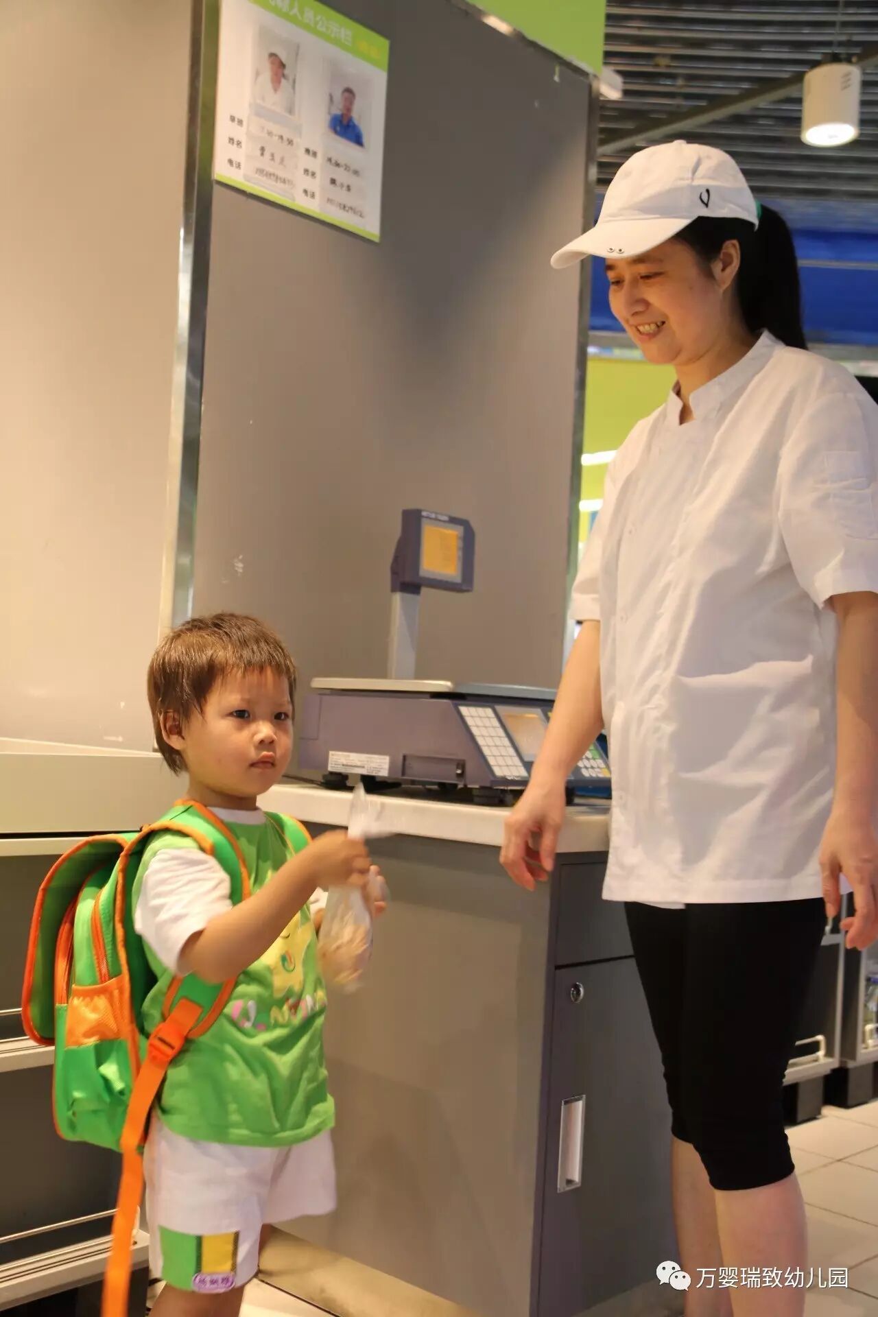 就在今天,我们万婴瑞致幼儿园的小朋友们,背上书包,带好帽子,向着购物超市出发了!