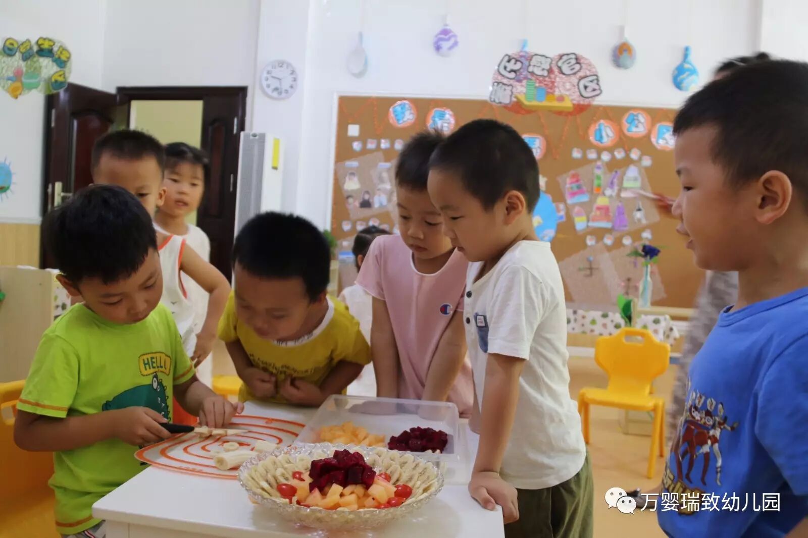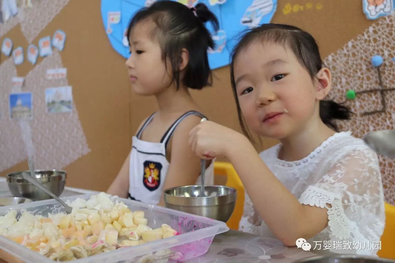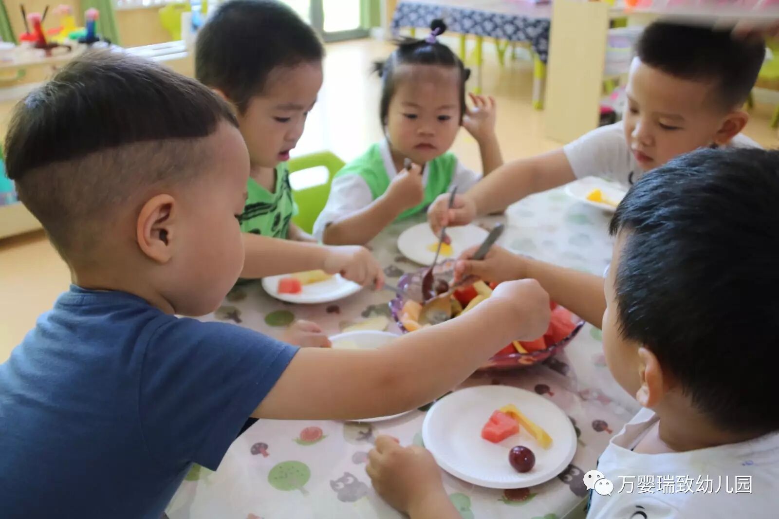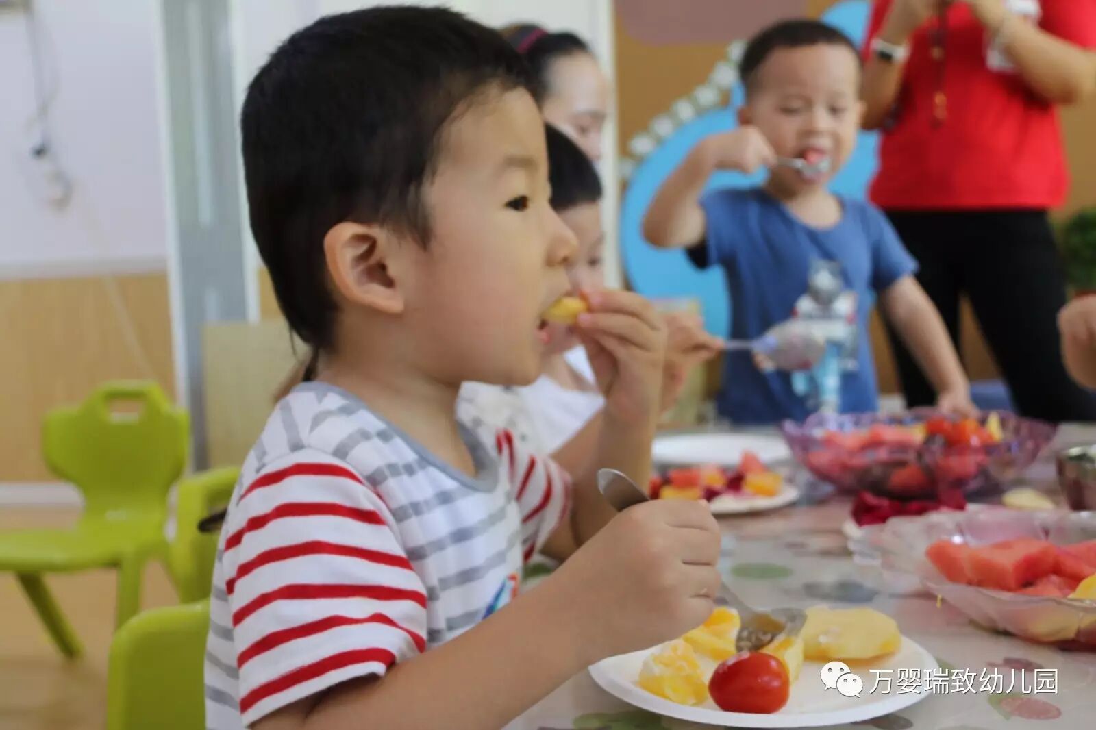 今日暑期课堂,我们瑞致园的宝贝邀请妈妈来到课堂,和小朋友一起现场制作水果沙拉和果汁。