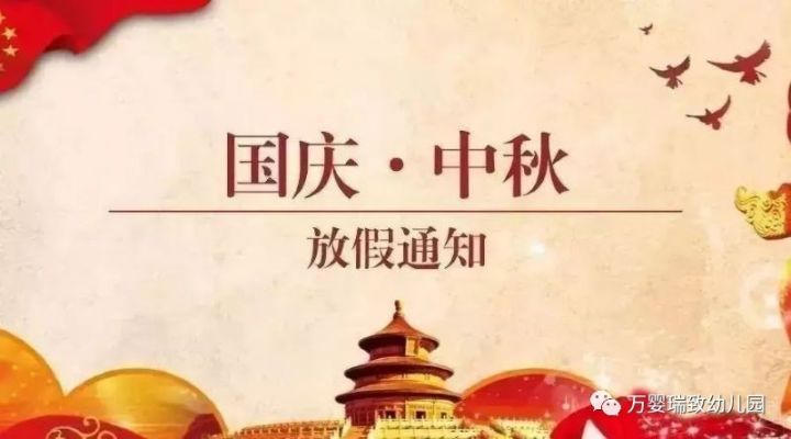 9月30日(星期六)照常入园,10月1日(星期日)——10月8日(星期日)放假8天,10月9日(星期一)照常入园!