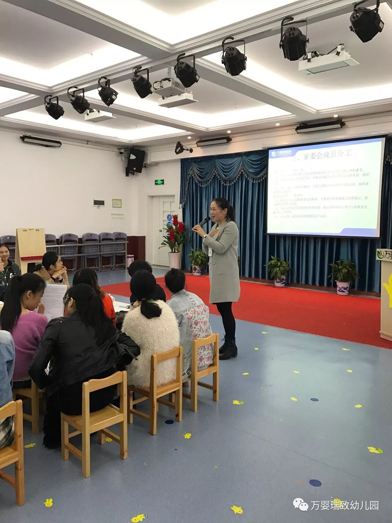 会仪在我们教学园长张园的主持下拉开了序幕 接下来就是园长讲座啦。。。 在游戏中,让家长们介绍自己的姓名、职业、爱好,家委们之间相互认识。 何园长在会议中 (1)讲解家委会成立的目的。 (2)讲解园级家委会成员的职责。让大家明确不同职位的权利和责任。 (3)讲解园所的规划 (4)讲解园所本学期的大型活动及拓展课程。 家长委员会是家长、幼儿园沟通中的重要桥梁组织,是家长为孩子健康成长发挥作用的平台,在会议中家长们根据开始的自我介绍和园长对家委会职责的要求,进行家委会会长、副会长、秘书长的竞选。