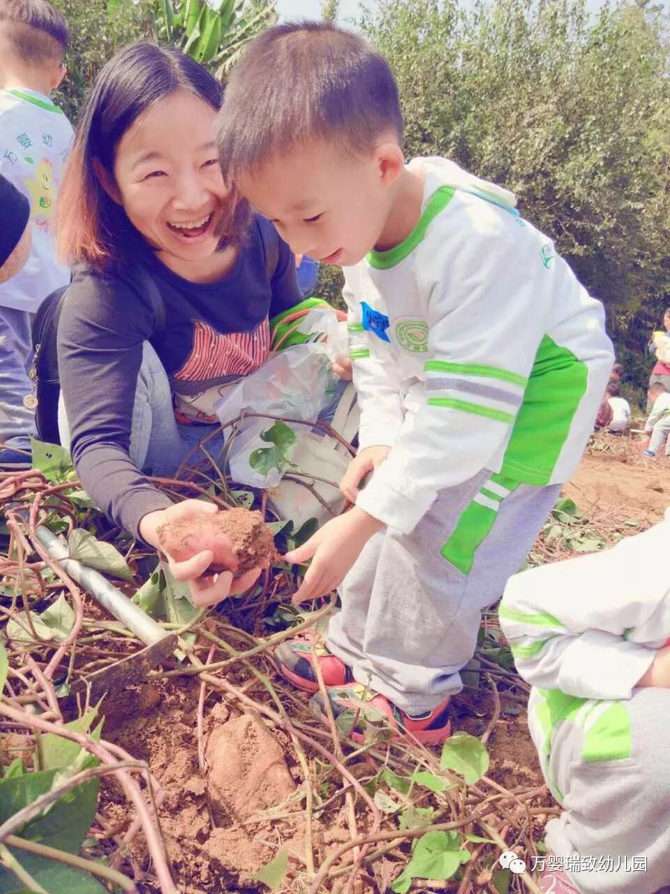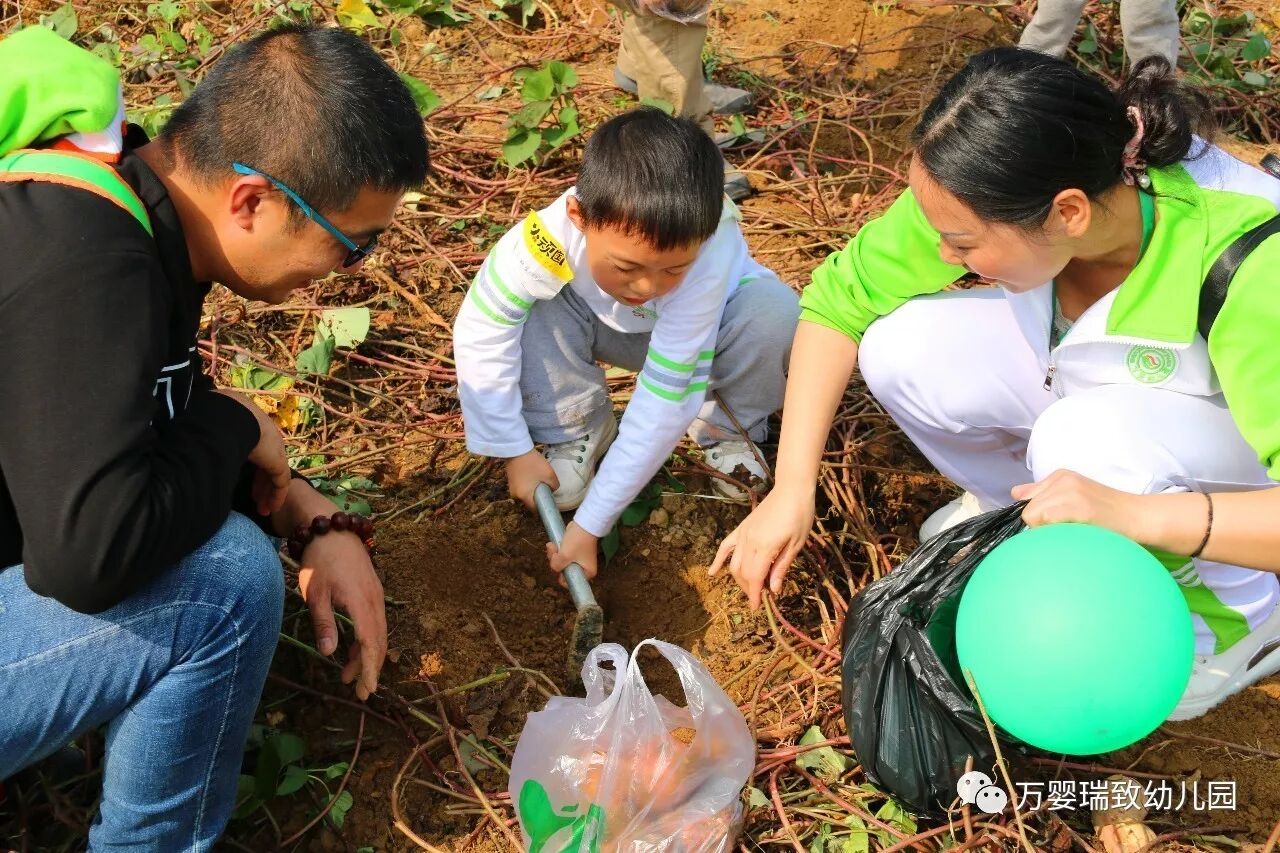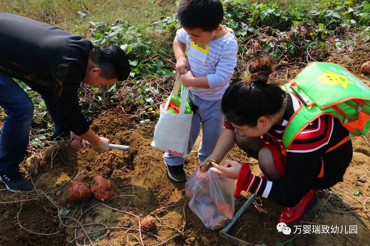 期待已久的挖红薯活动,真的是干劲十足,都是要挖个大大的红薯才行。孩子们自己动手,爸爸妈妈在一旁进行指导,孩子们动作由生疏到熟练,最后看到自己劳动成果也是非常的自豪的。