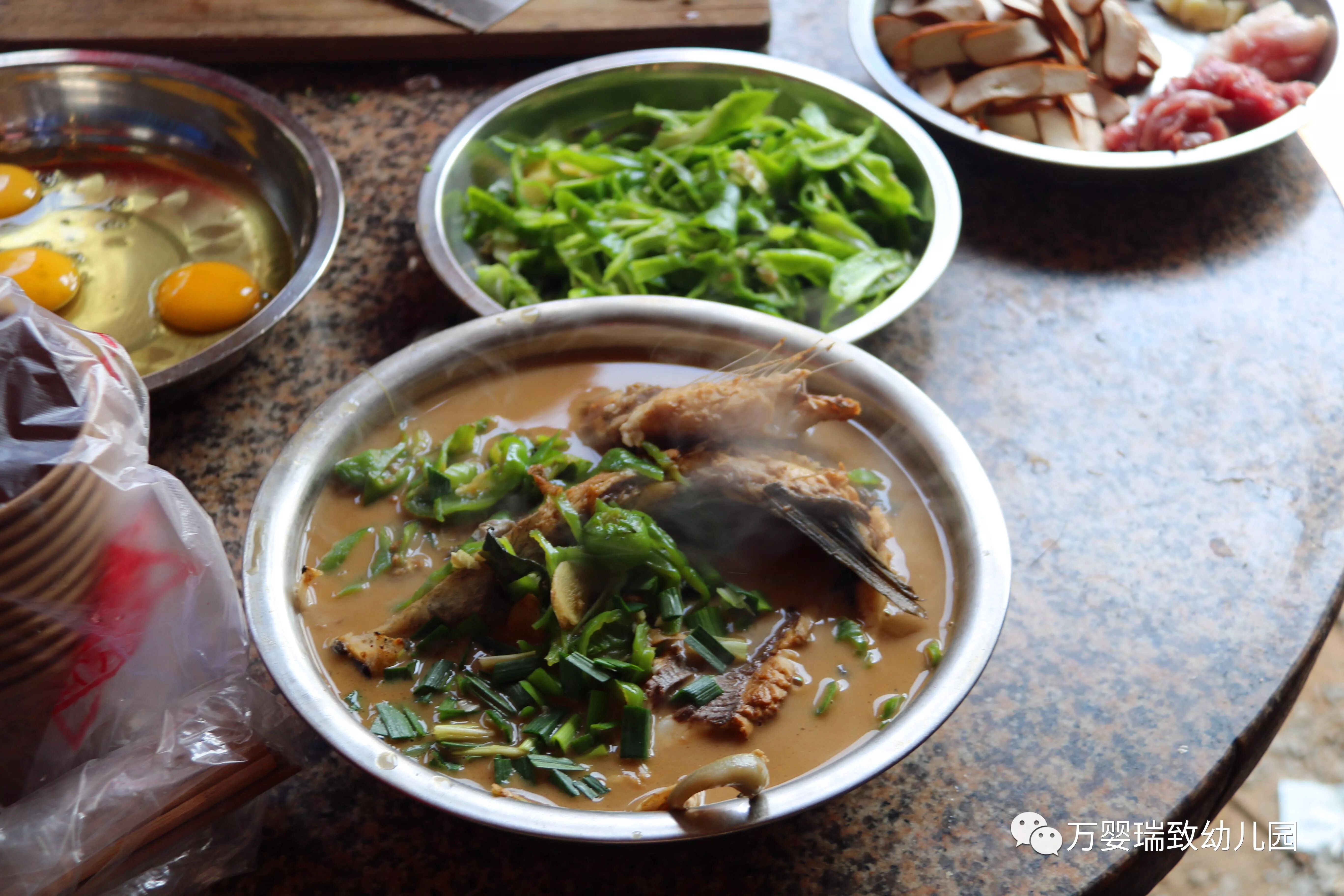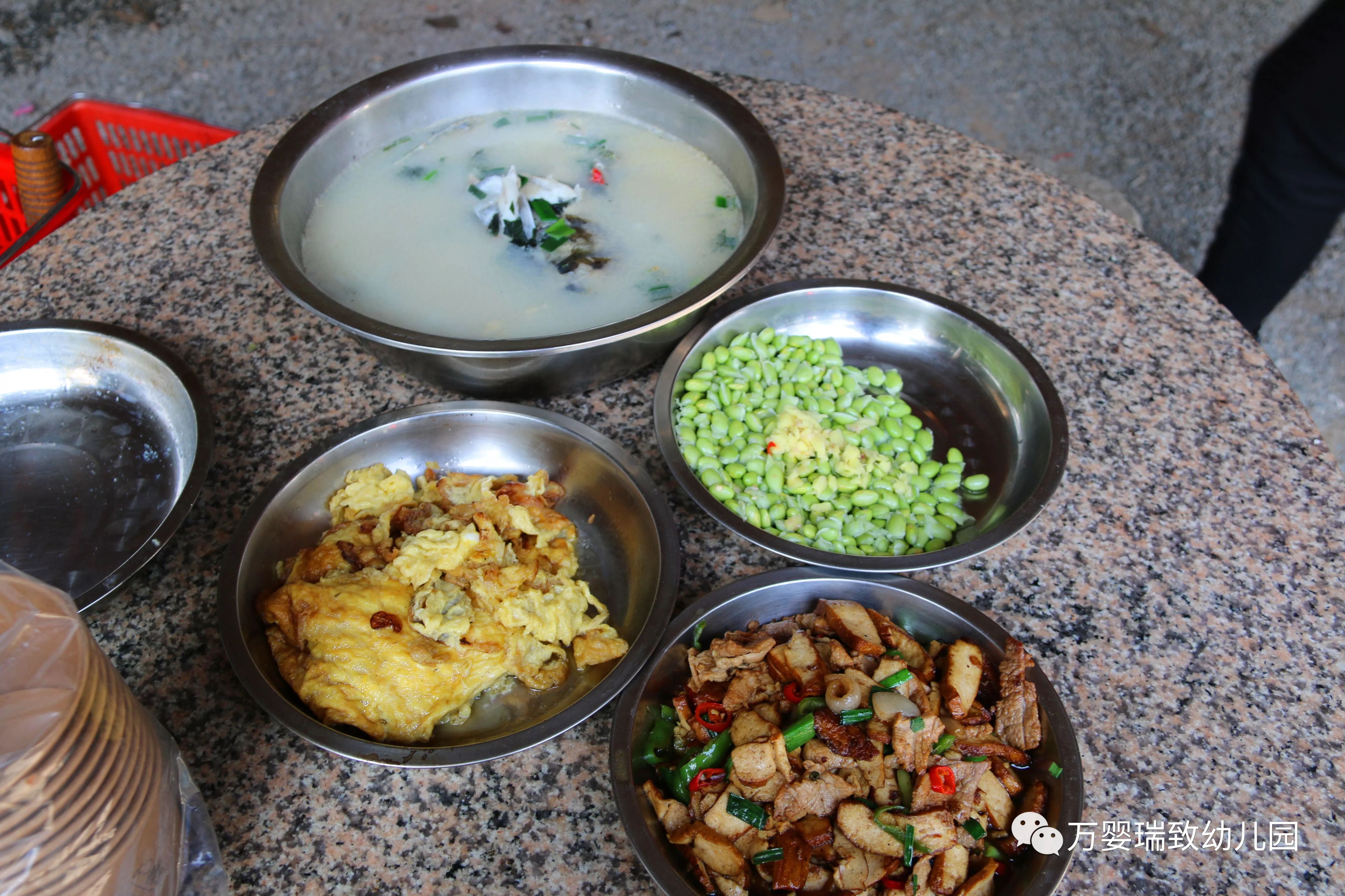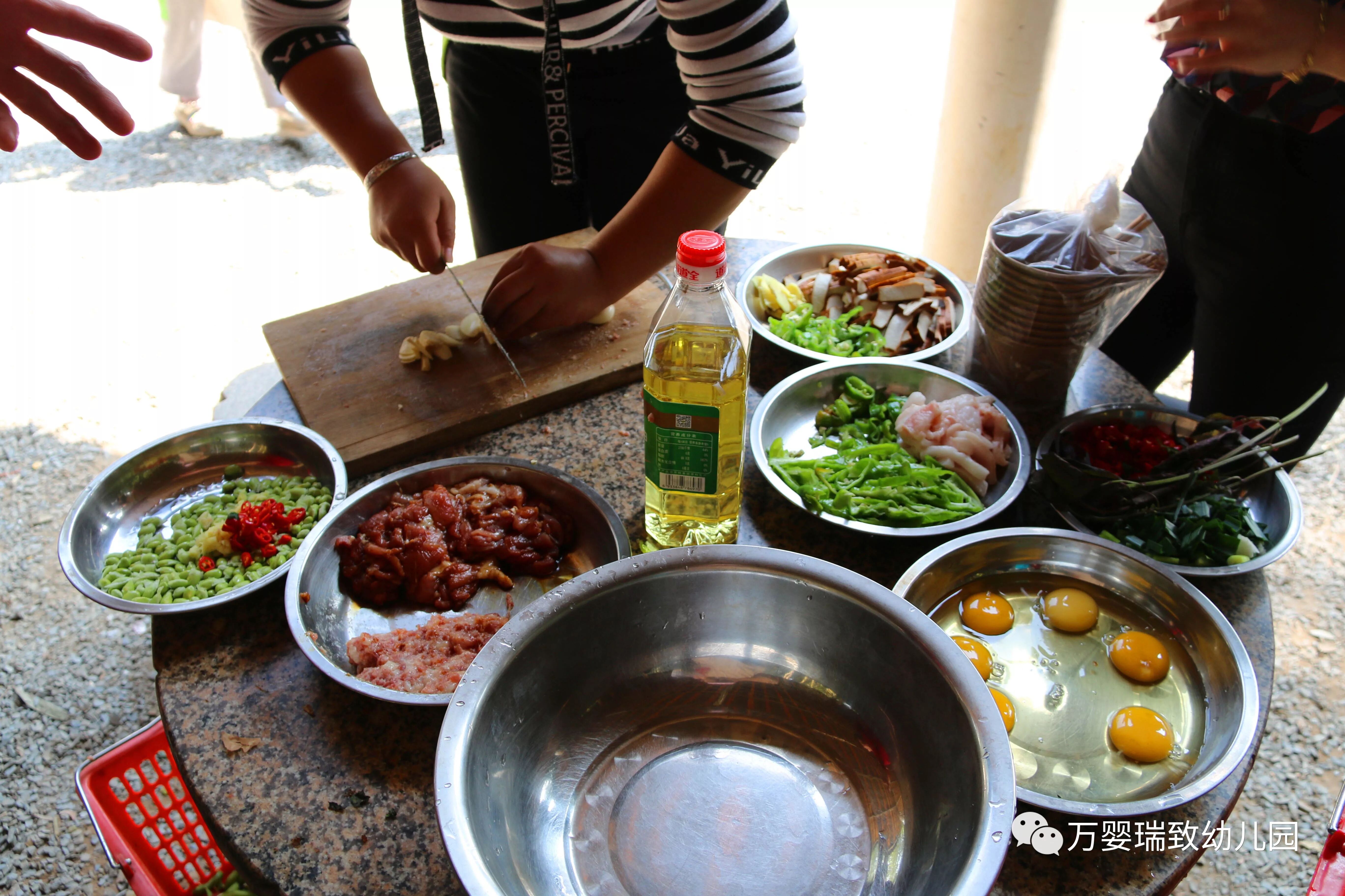 临近中午,随着一阵阵的饭香飘来,我们小班的孩子们围桌吃上了热腾腾、香喷喷的爱心午餐。中大班的孩子们来到了重头戏,自制中餐!家长和孩子们按照预先的分组,孩子帮助爸爸妈妈们洗菜、端菜。爸爸妈妈们生火,切菜、煮菜。大家各司其职,做饭如火如荼的进行着。随着一阵阵的饭香飘来,孩子们吃上了热腾腾、香喷喷的爱心餐。