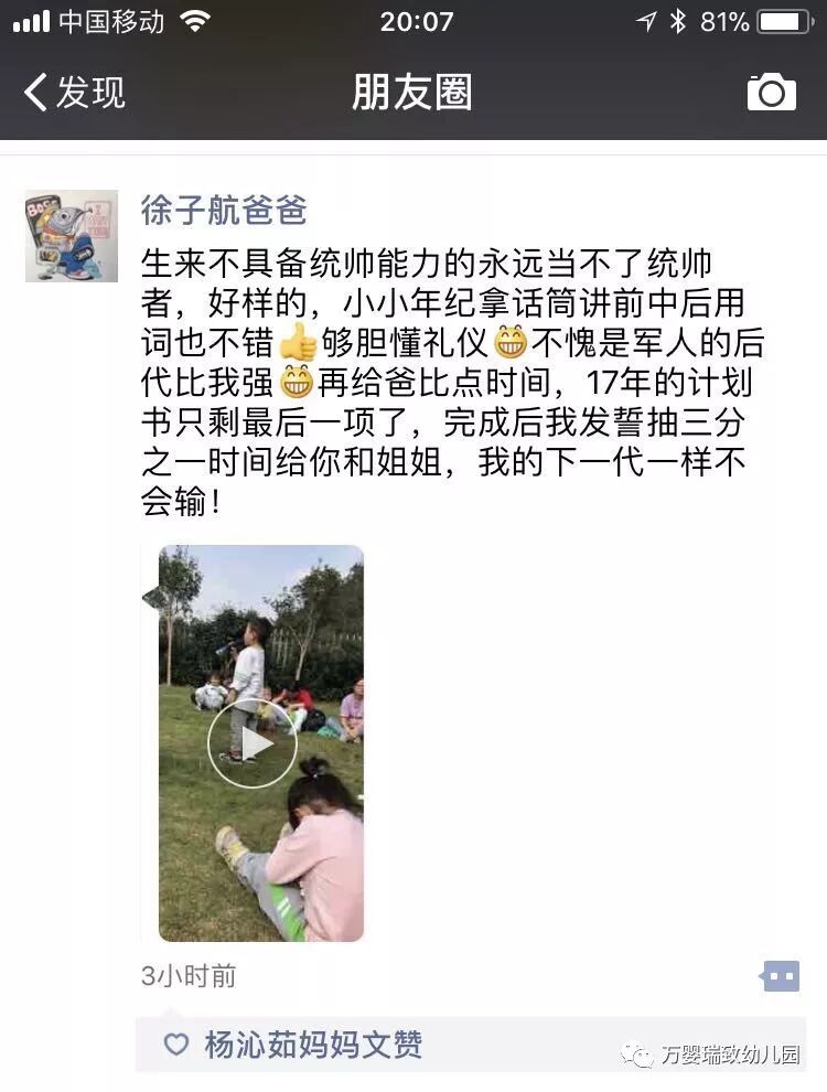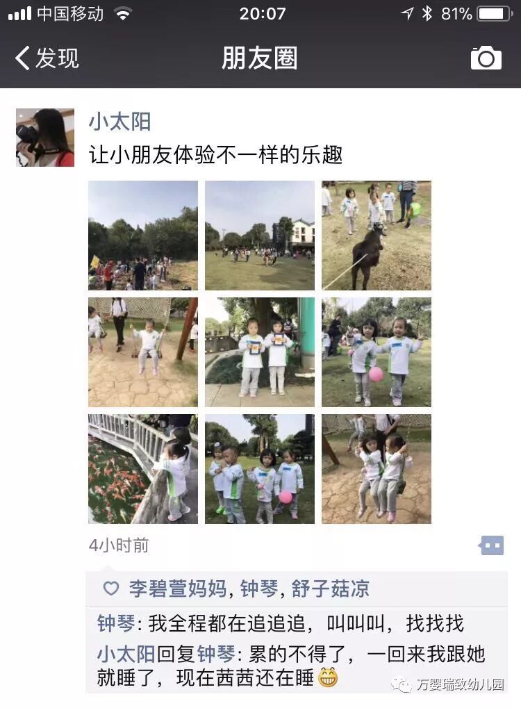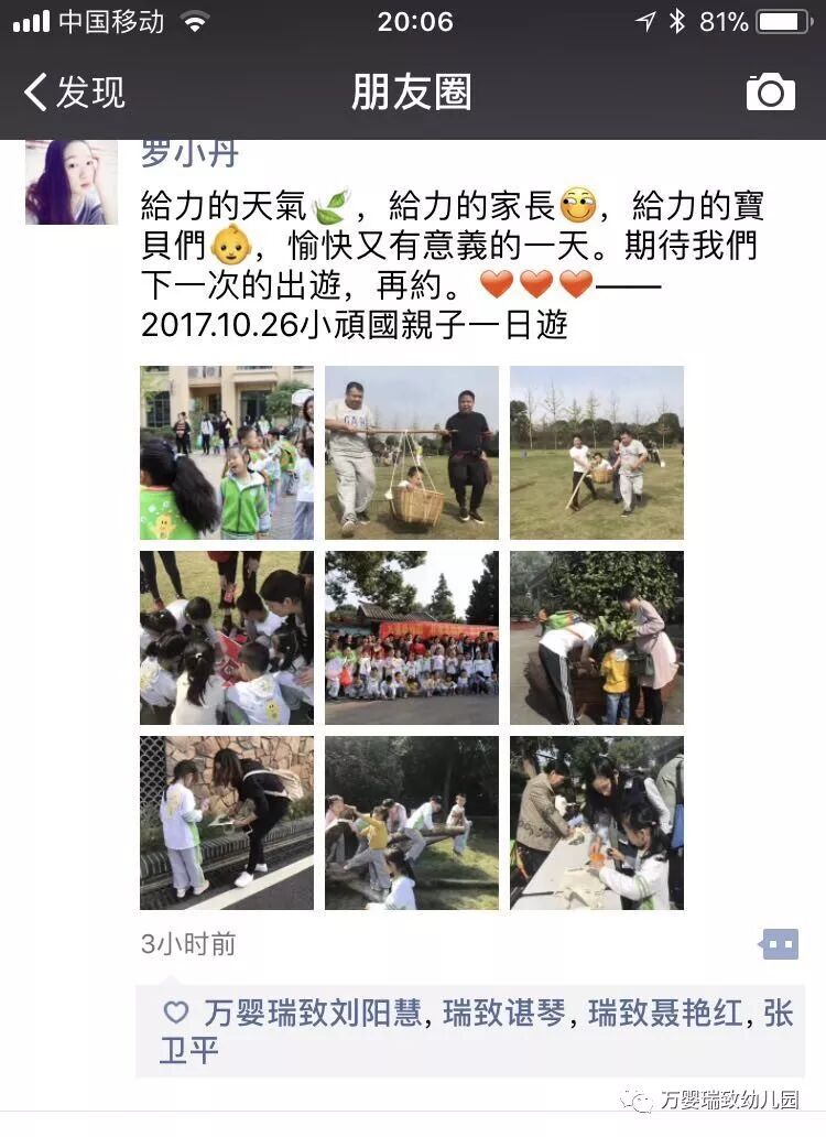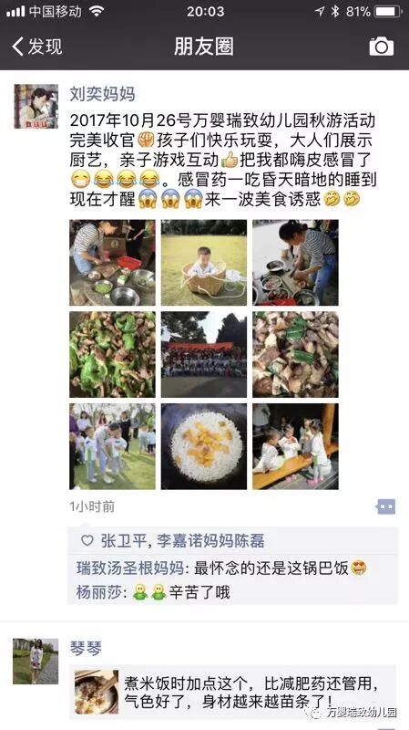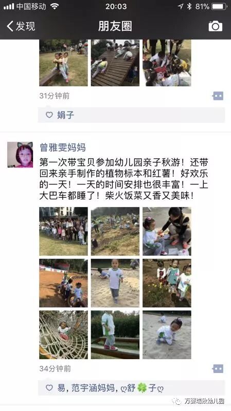 一天下来孩子们和家长们十分的开心,留下珍贵的美好回忆。回园后,老师们对活动做了小结,家长们对活动的好评率也是极高,希望能够多多开展这样具有意义的活动!
