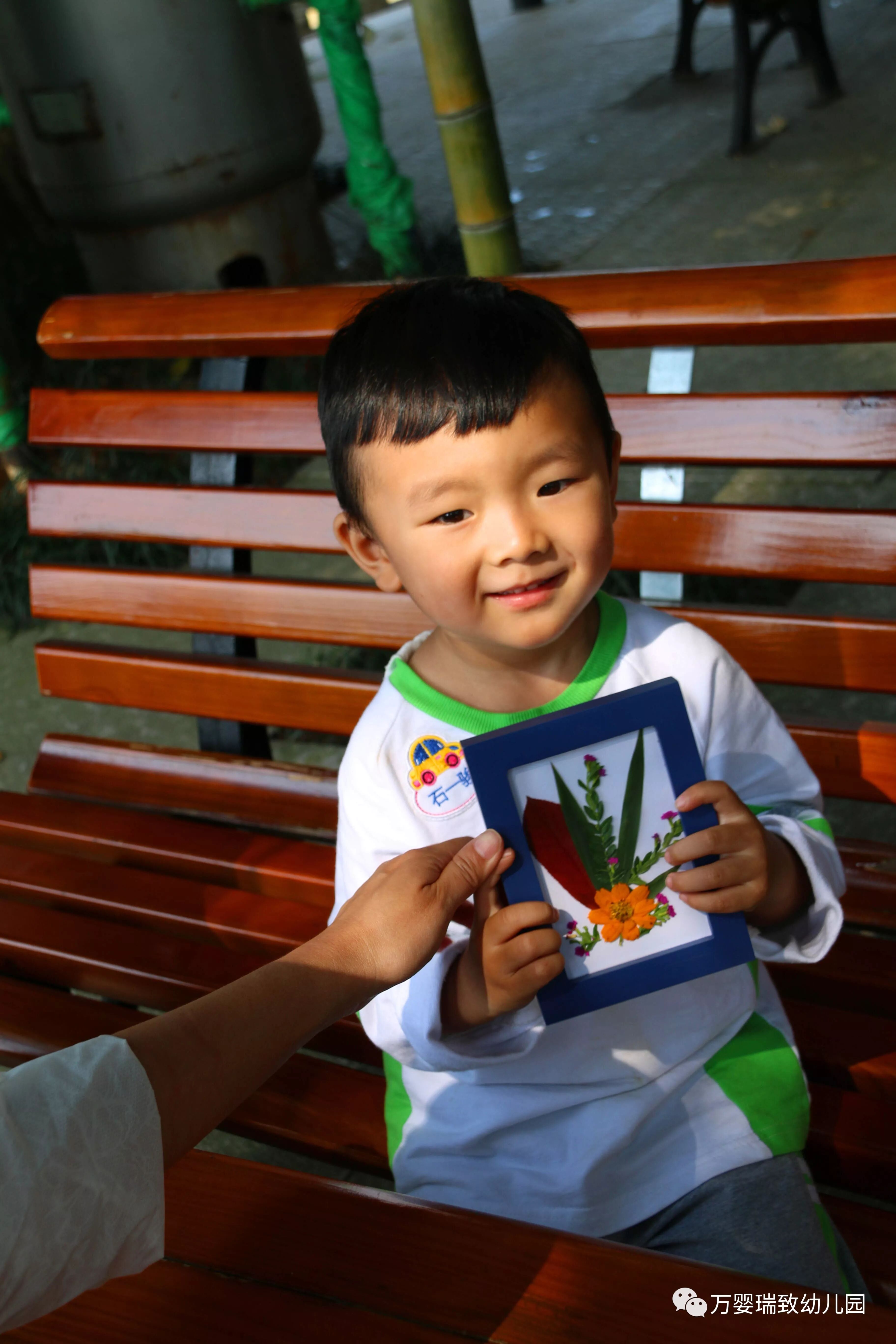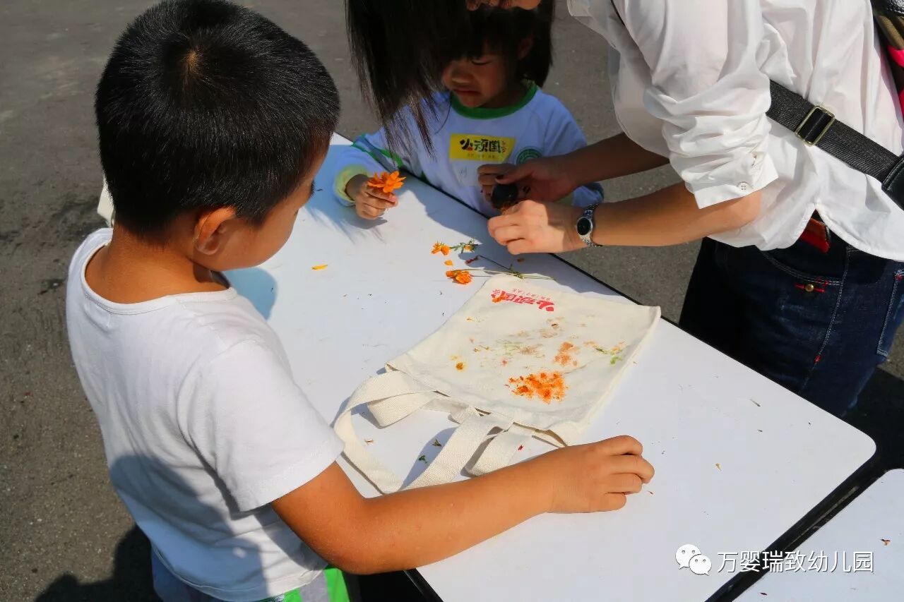 进行了自然课程,听完老师的讲解后,孩子们便去大树下找了不同的5种树叶或花,然后在到老师处领取了作画材料,便开始进行创作。大家把大自然中最美好的颜色留在了精美的手工袋上,相框里,所有美丽的图案都是大家独特的创意。