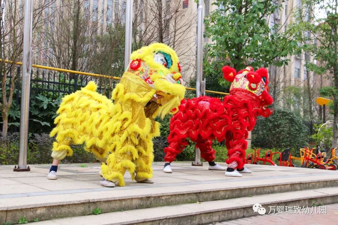 两头活泼威猛的狮子迎接小朋友的快乐入园。恭祝小朋友、及家长朋友们在新的一年里新年新气象,人旺、财旺、福旺、事事兴旺!